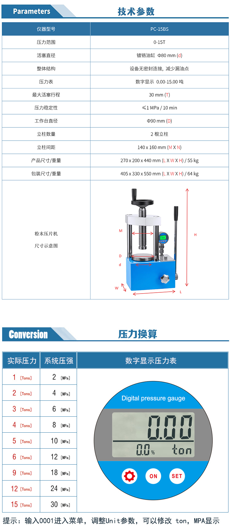 兩柱手動(dòng)數(shù)顯壓片機(jī)[15噸]